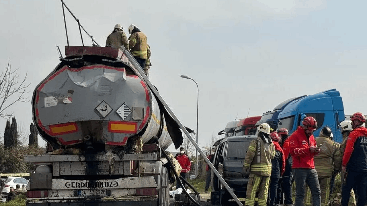 Ferhatpaşa Mahallesi Samandıra Caddesi'nde bulunan dinlenme tesisindeki akaryakıt tankerinde henüz belirlenemeyen nedenle yangın çıktı.