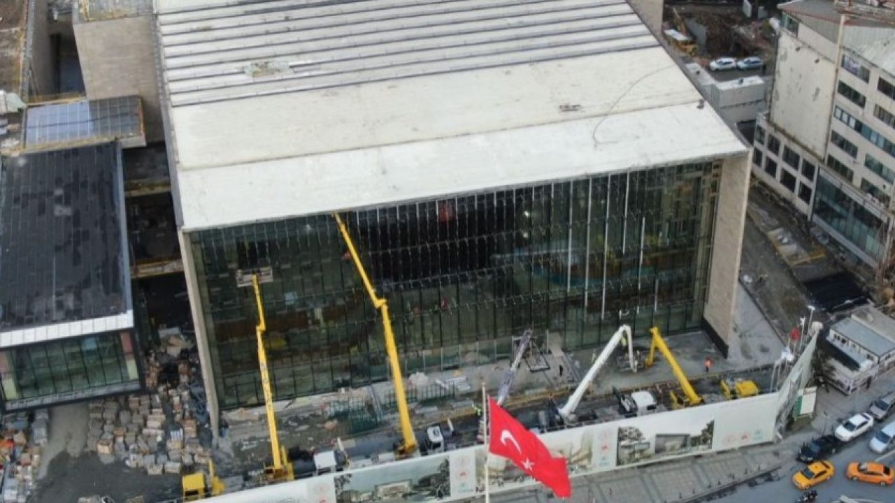 İstanbul’un simgelerinden olan Taksim’deki Atatürk Kültür Merkezi (AKM) inşaatında çalışmalar korona virüs tedbirlerine uyularak tüm hızıyla sürüyor. Taksim’deki Atatürk Kültür Merkezi’nin (AKM) kaba inşaatının yüzde 90’ı tamamlandı. İnşaatında her geçen gün sona doğru yaklaşılan AKM’nin havadan çekilen görüntülerinde dış cephenin neredeyse tamamlandığı ve son haline yaklaştığı görülüyor. İşçiler AKM’nin son halindeki cam cephelerine yerleştirilen parçaları montajını yapıyor. Yıkılan AKM’nin mimarı olan Hayati Tabanlıoğlu’nun oğlu mimar Murat Tabanlıoğlu imzasını taşıyan yeni Atatürk Kültür Merkezi’ndeki işçilerin hummalı çalışması pandemi sürecinde kurallara uyularak devam ediyor.