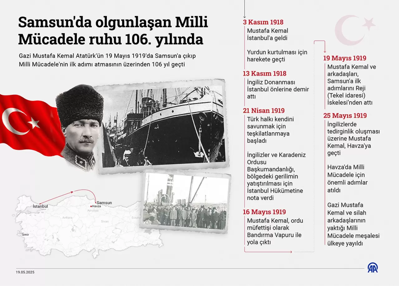 Büyük Önder Gazi Mustafa Kemal Atatürk'ün 19 Mayıs 1919'da düşmanın dört koldan sardığı yurdu kurtuluşa götürmek için Samsun'a çıkıp Milli Mücadele'yi başlatmasının üzerinden tam 106 yıl geçti. İşte o şanlı zaferin öyküsü...