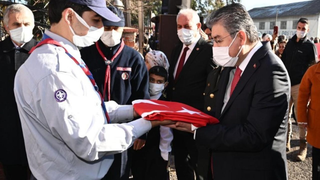 Tren garındaki ilk tören, trenle gara gelen izci grubunun taşıdıkları Türk bayrağını Osmaniye Valisi Erdinç Yılmaz'a teslim etmesiyle başladı.