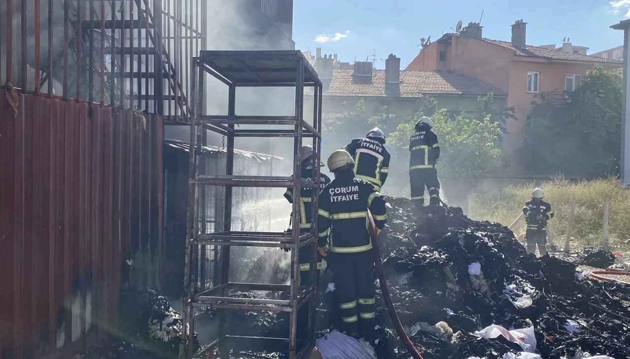 Çorum'da tekstil atıklarının istiflendiği arsada çıkan yangın, itfaiye ekipleri tarafından söndürüldü.
