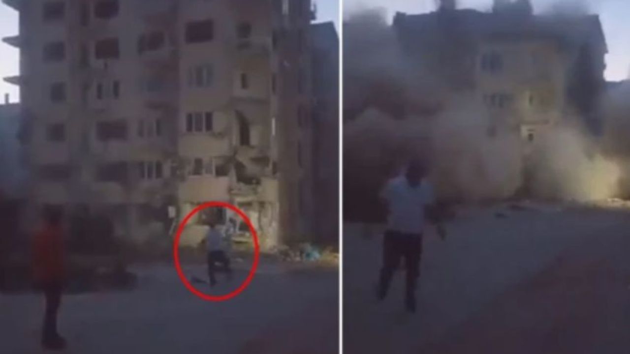 Malatya'da attığı bir taşla 8 katlı binayı yıkan vatandaş sosyal medyada gündem oldu. Kahramanmaraş merkezli depremlerde etkilenen 11 ilden biri olan Malatya'da ağır hasarlı binaların yıkım işlemleri sürüyor.