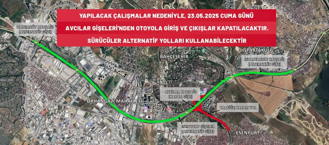 Yapılacak çalışmalar nedeni ile Avcılar Gişelerinden Otoyola giriş ve çıkışlar kapatılacak olup, sürücüler alternatif yolları kullanabilecektir" ifadelerine yer verildi.