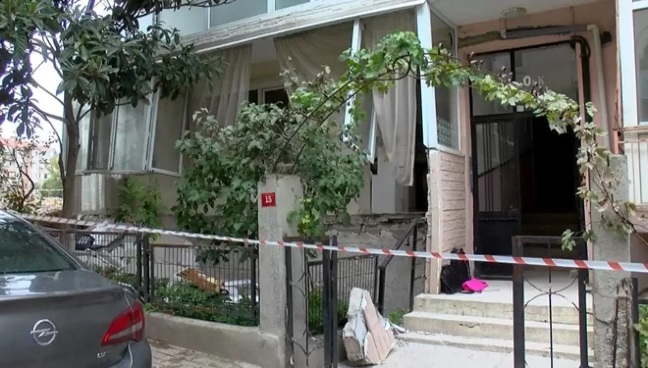 Binanın giriş katındaki dairenin balkonu aniden çöktü. O sırada balkonda bulunan Hayriye E., beton parçalarının altında kaldı.