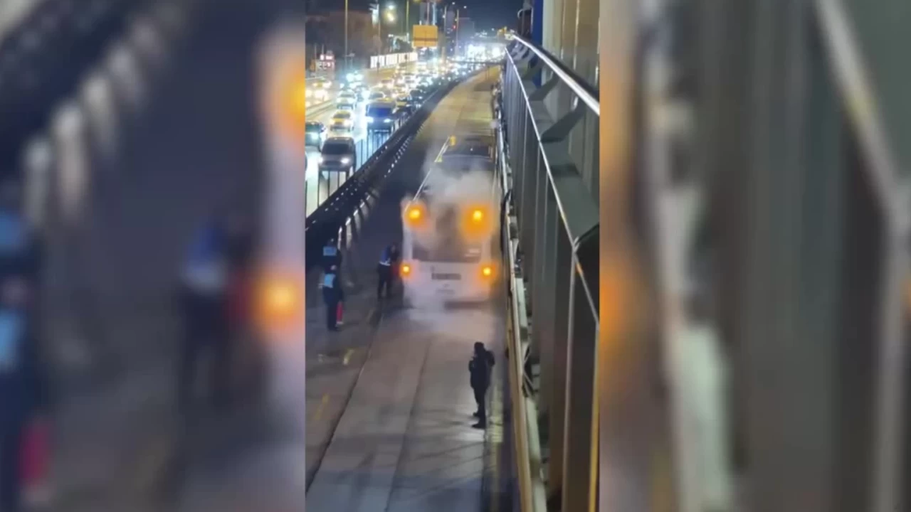 Metrobüsün motor kısmındaki dumanın yükselmesi üzerine araç görevlileri hızlıca yangın tüpleriyle müdahalede bulundu. Neyse ki, yangın çıkmadan duman kontrol altına alındı.