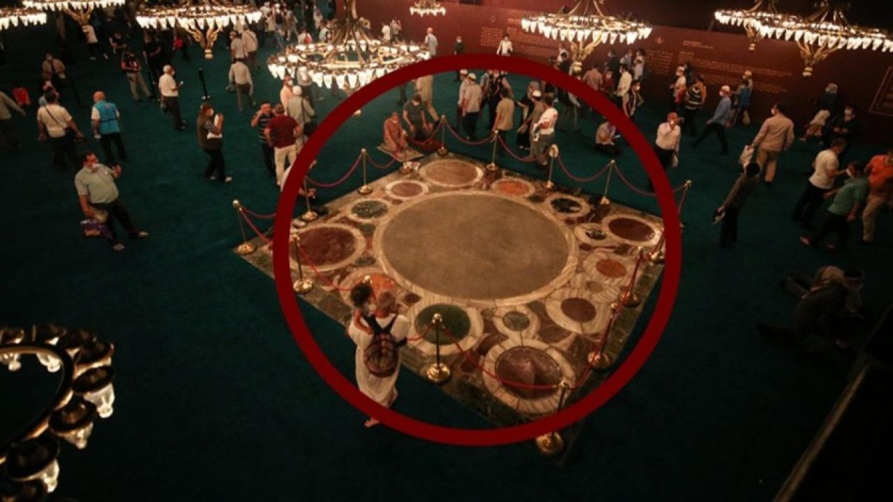 Yılmaz, "Boş bırakılan alan imparatorların tac giyme alanıdır. Bu nedenle boş bırakıldı. Buradaki daire şeklindeki renkli alanlarda Ayasofya'nın yapımında kullanılan mermerlerden örneklerdir. Alanla ilgili farklı yorumlar tarihi bilgilerle uyuşmuyor." dedi.