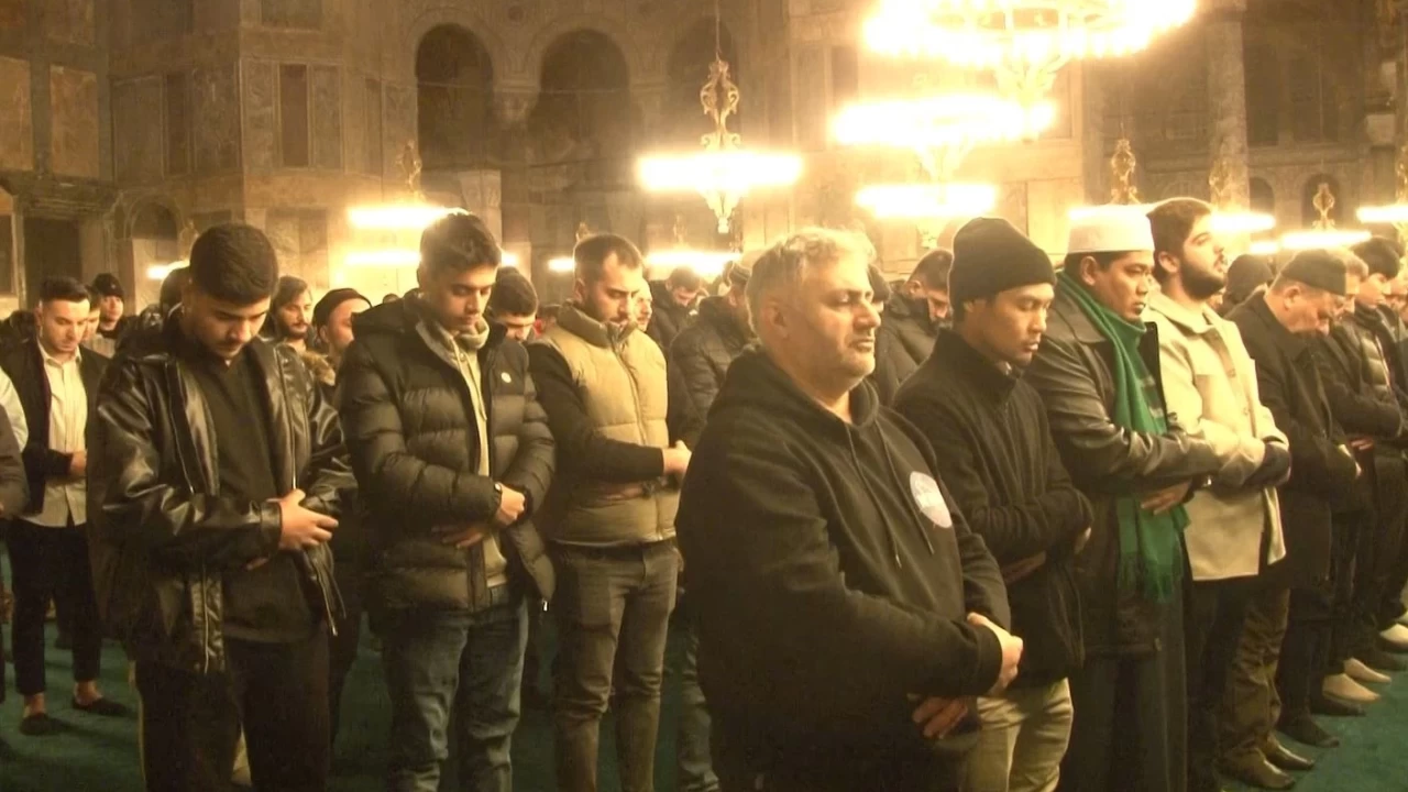 İstanbul'da Ayasofya'da Miraç Kandili özel programı düzenlendi. Cami, Müslümanlarla dolup taşarken dualar edildi. Yatsı namazı öncesi ibadetler gerçekleştirildi.