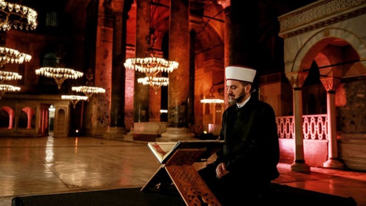 2. Mehmet'in, aralıklarla 54 gün süren kuşatmanın ardından 29 Mayıs 1453 Salı günü gerçekleşen fetihten sonra ilk cuma namazını kıldığı, fethin simgesi Ayasofya'nın içinde Fetih Suresi tilavet edildi.