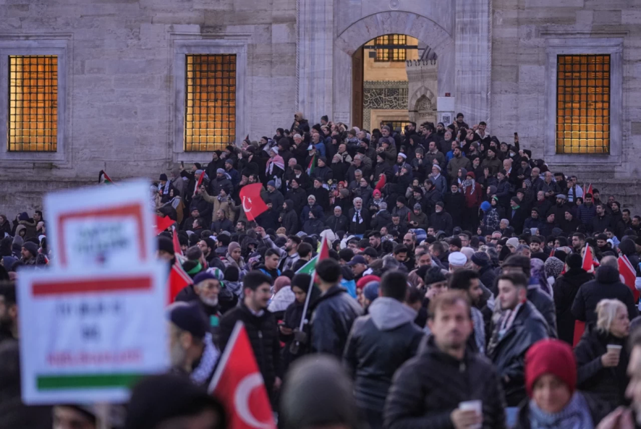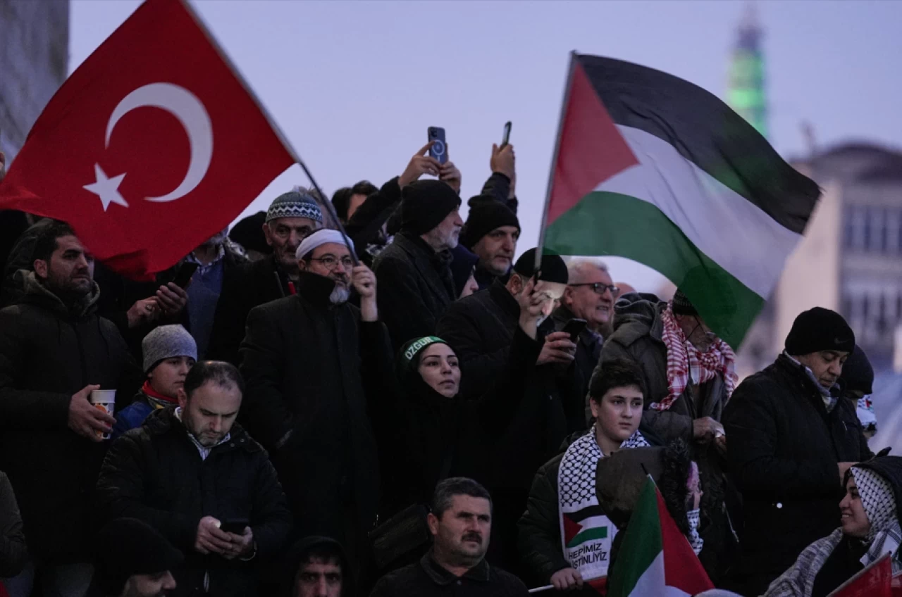 İstanbul’da yeni yılın ilk gününde 400’den fazla sivil toplum kuruluşunun katılımıyla Filistin için “Dün Ayasofya, Bugün Emevi, Yarın Aksa” temalı yürüyüş düzenlendi. Ayasofya ve diğer camilerde toplanan vatandaşlar, kortejle Galata Köprüsü'ne yürüdü.