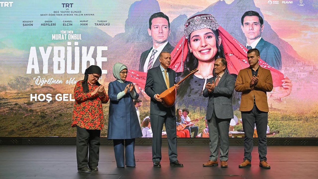 Şehit #AybükeYalçın’ın 22 yıla sığdırdığı bayraklaşan hikâyesini anlatan #AybükeÖğretmenOldumBen filmimizin ilk izlemesini Cumhurbaşkanımız Sayın @RTErdogan, Sayın @EmineErdogan Hanımefendi ve kıymetli misafirlerimizle gerçekleştirdik.