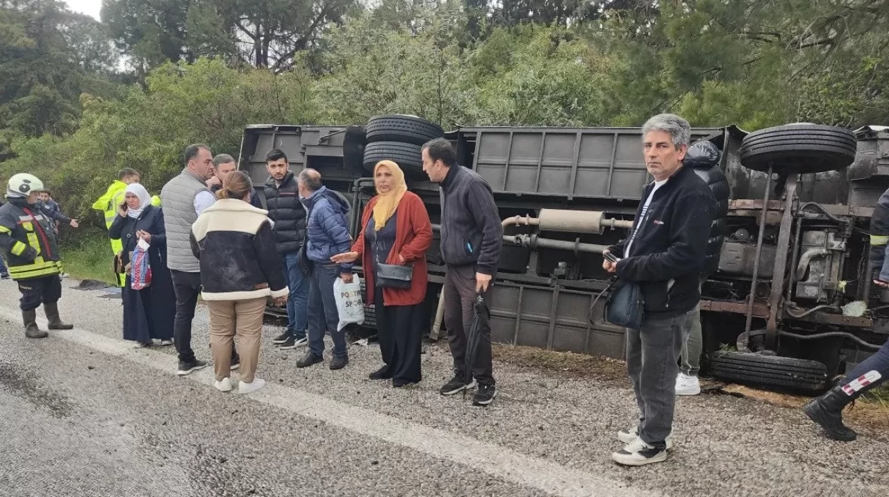 Aydın’ın Kuşadası ilçesinde yaşanan kazada, otel personelini taşıyan servis aracı devrildi.