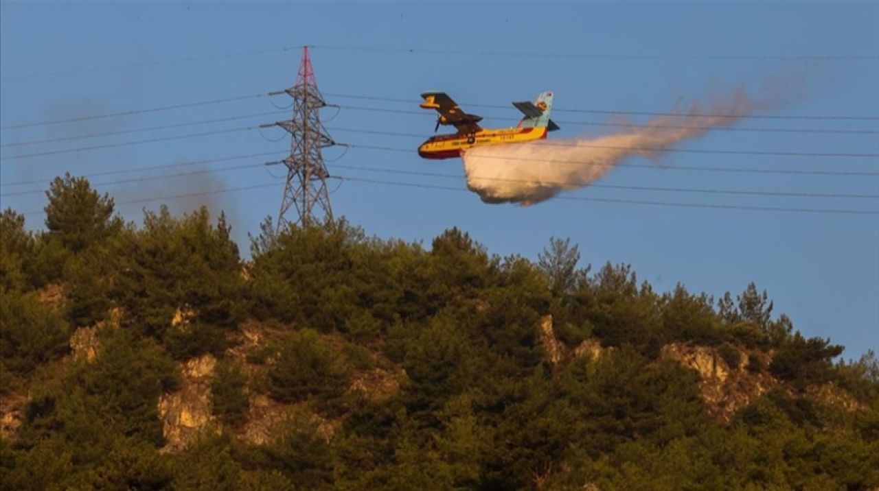 Yangına hava araçlarının yanı sıra karadan Orman İşletme Müdürlüğü ve itfaiye ekiplerinin müdahalesi sürüyor.