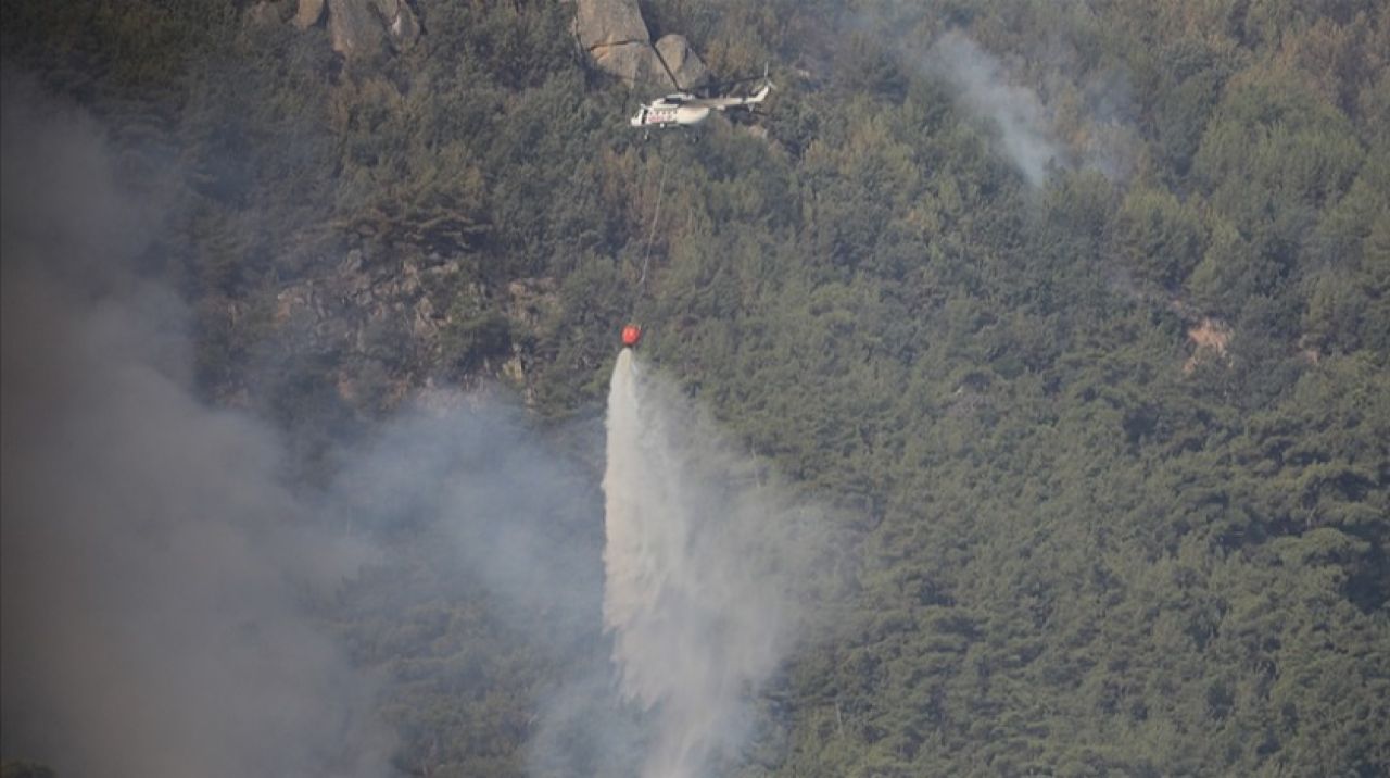 Bölgedeki 6 mahallenin belirli bölümlerinin tahliye edildiği yangını söndürme çalışmalarında 6 helikopter ve çok sayıda arazöz kullanılıyor.