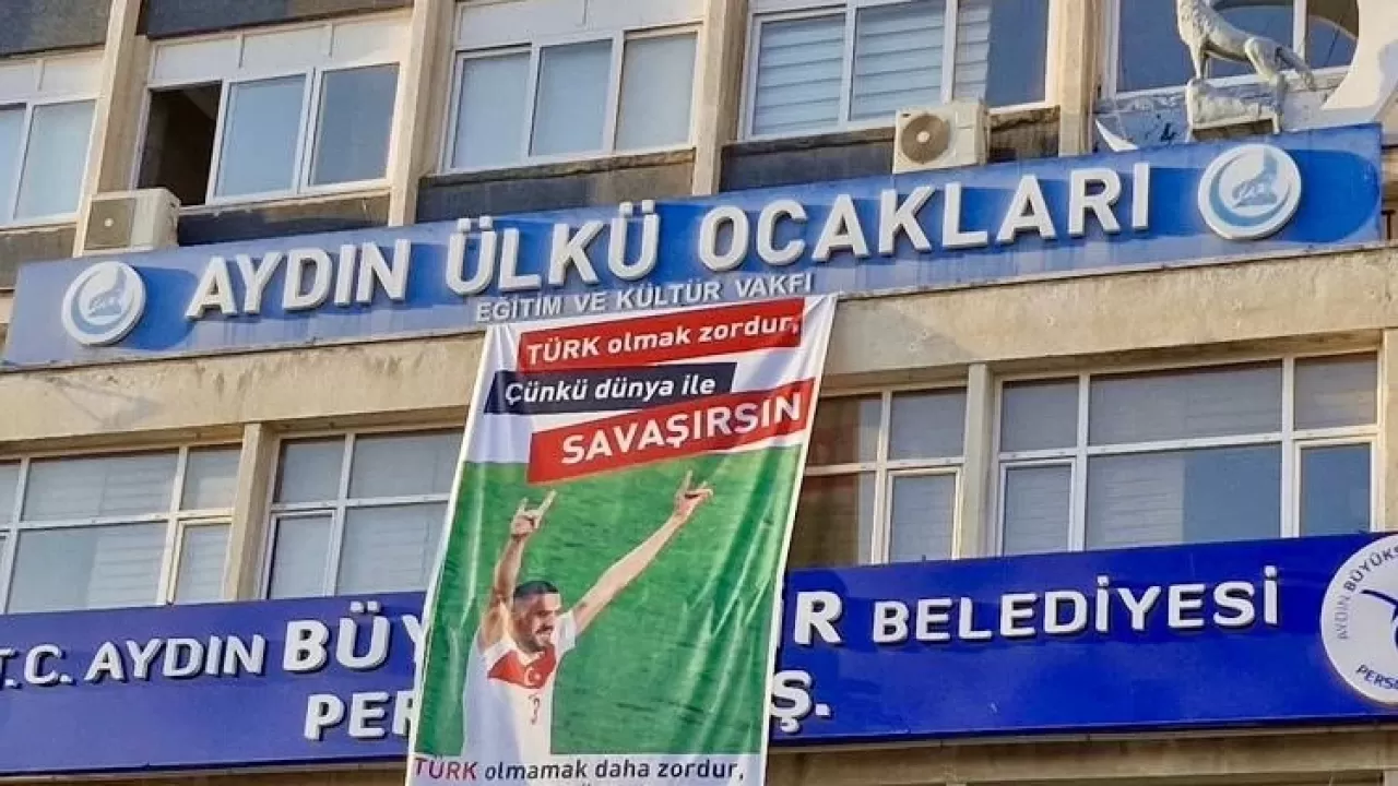 EURO 2024 son 16 turundaki Türkiye-Avusturya maçında attığı golün ardından 'bozkurt' işareti yaparak gol sevincini yaşayan Merih Demiral'a UEFA'dan 2 maç ceza geldi. Verilen cezaya ülke genelinde tepkiler yağarken bir tepki de Aydınlı ülkücülerden geldi. Aydın Ülkü Ocakları İl Başkanlığı, hazırladığı "Türk olmak zordur. Çünkü dünya ile savaşırsın. Türk olmamak daha zordur. Çünkü Türk ile savaşırsın" yazılı pankartla cezaya tepki göstererek, Merih Demiral'a destek mesajı verdi.