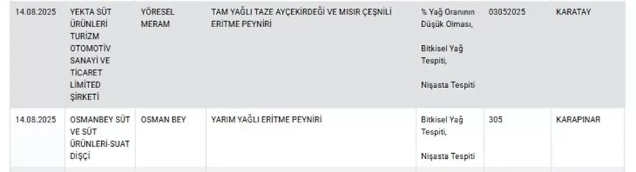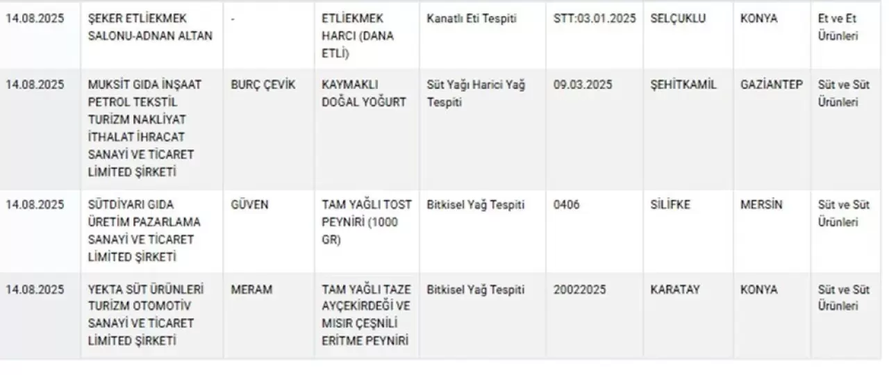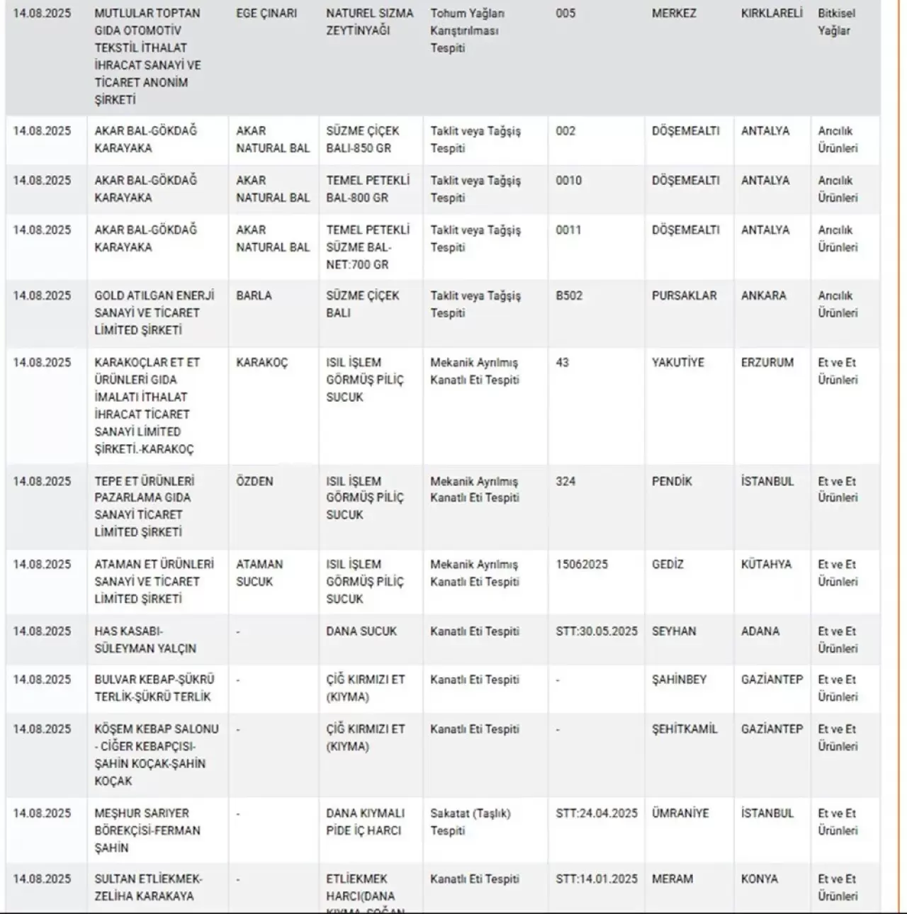 Tarım ve Orman Bakanlığı, taklit ve tağşiş yaptığı belirlenen firmaları ve sağlığı tehlikeye düşürecek gıdaları bir kez daha kamuoyuyla paylaştı.