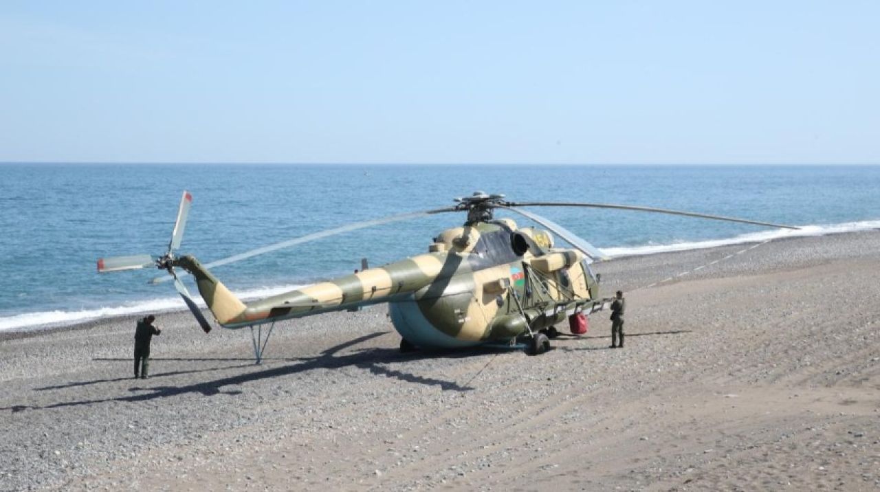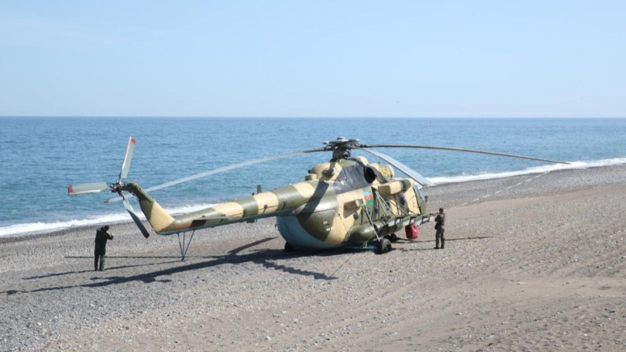 Giresun'da sahile zorunlu iniş yapan Azerbaycan'a ait askeri helikopterdeki arızanın giderilmesi için çalışma başlatıldı.
