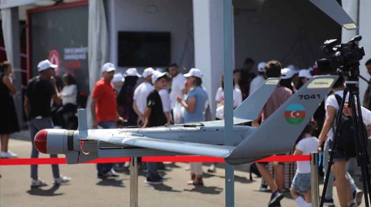 Azerbaycan'ın yerli kamikaze SİHA'sı "İti Kovan" önünde vatandaşlar hatıra fotoğrafları çektirdi.
