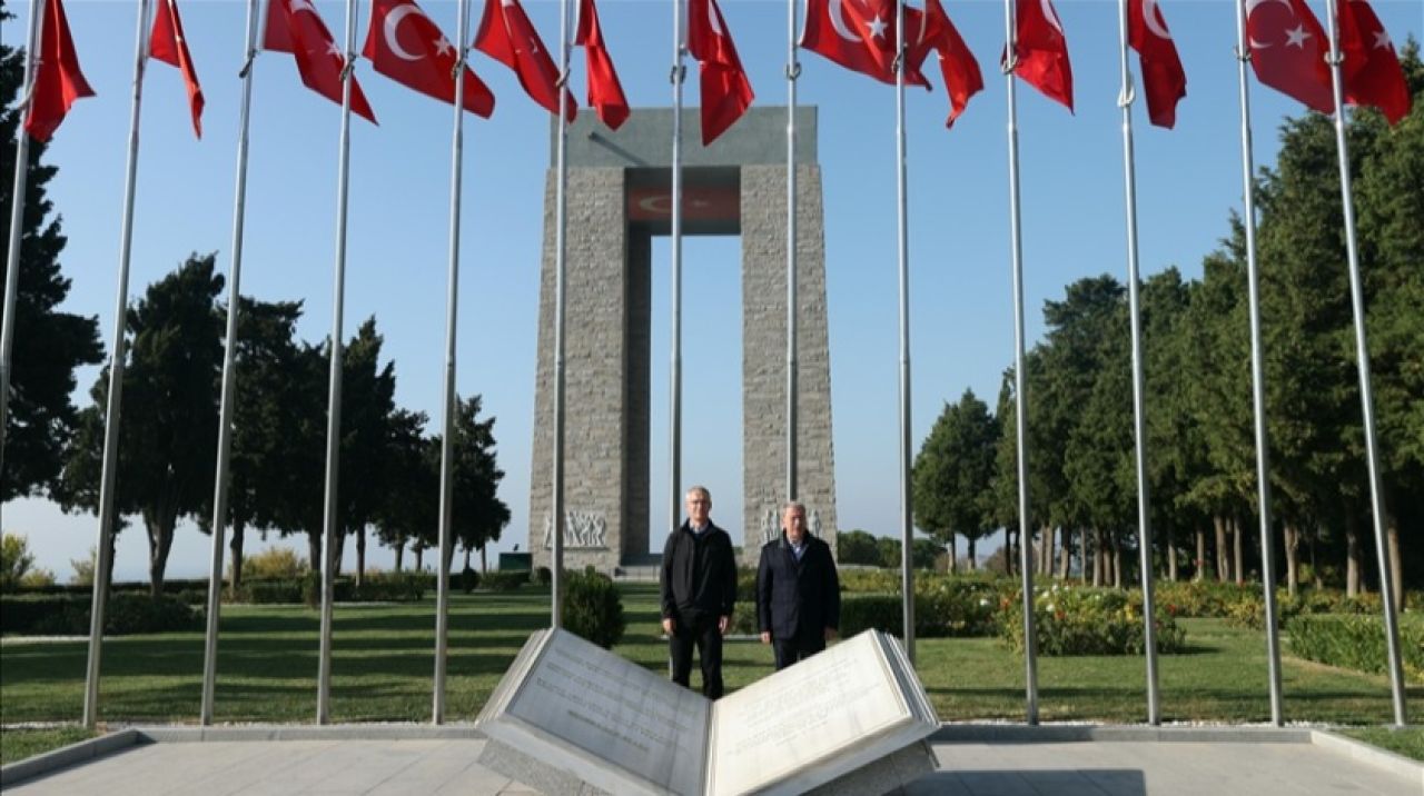Akar, NATO Genel Sekreteri Stoltenberg ile helikopterle tarihi Gelibolu Yarımadası'ndaki Şehitler Abidesi'ne geldi.