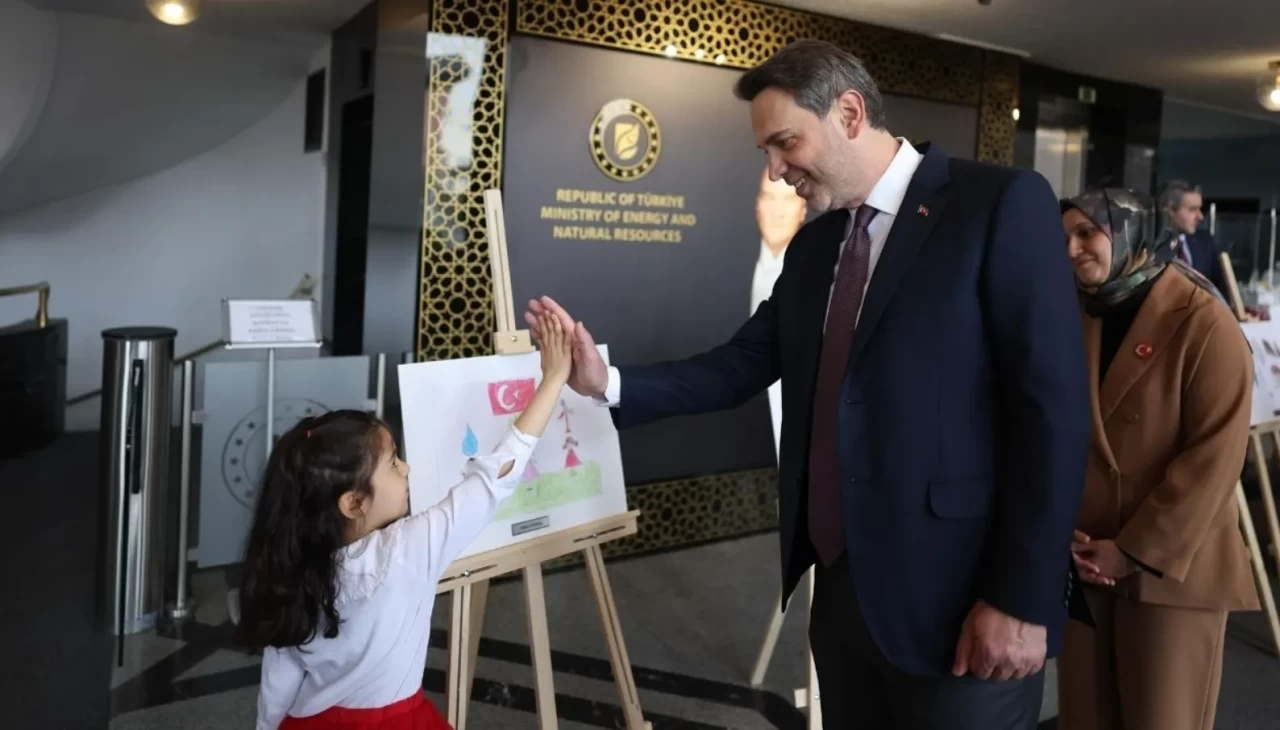 Enerji ve Tabii Kaynaklar Bakanı Alparslan Bayraktar, bakanlık tarafından 23 Nisan kapsamında düzenlenen “Enerji ve madencilik” temalı resim yarışmasına katılan çocuklarla buluştu. Çocukların eserlerinden oluşan sergiyi gezen Bayraktar, öğrencilerle sohbet ederek çizimlerinin hikâyelerini dinledi.
