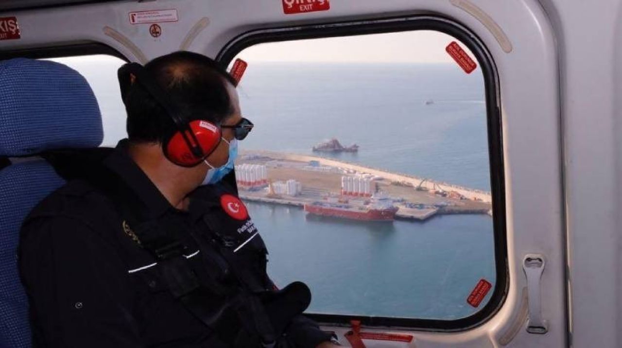 Enerji ve Tabii Kaynaklar Bakanı Dönmez "Fatih Sondaj Gemimize lojistik destek sağlayan Filyos Limanı'ndaki kıyı lojistiği genişleme çalışmalarını ve Karadeniz gazının şebekeye bağlanacağı noktayı havadan inceledik.