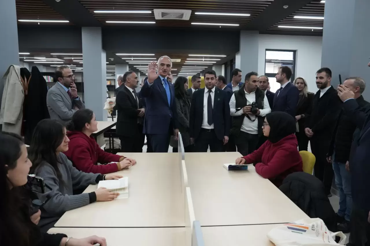 Kültür ve Turizm Bakanı Mehmet Nuri Ersoy, konuşmaların ardından kurdele keserek açılışını yaptığı Sason İlçe Halk Kütüphanesini beraberindeki heyet ile birlikte gezdi ve gençlerle bir araya geldi.