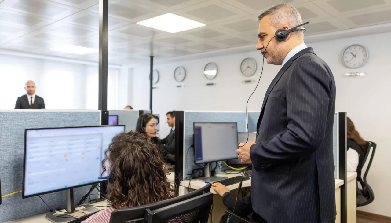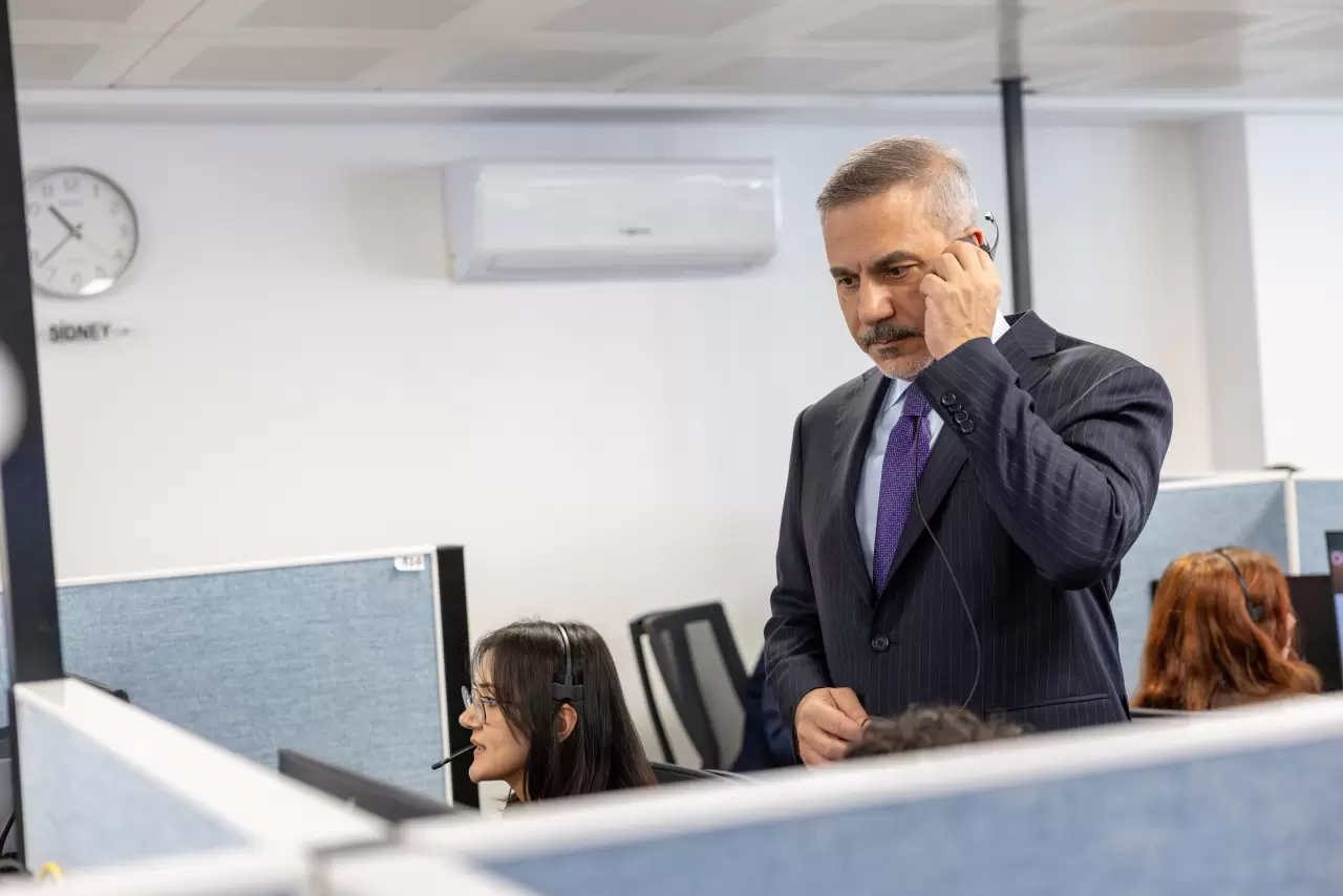 Bakan Fidan, Ankara'nın Kızılay semtinde yer alan Konsolosluk Çağrı Merkezi'ne yaptığı ziyarette, incelemelerde bulundu ve faaliyetlere ilişkin bilgi aldı.