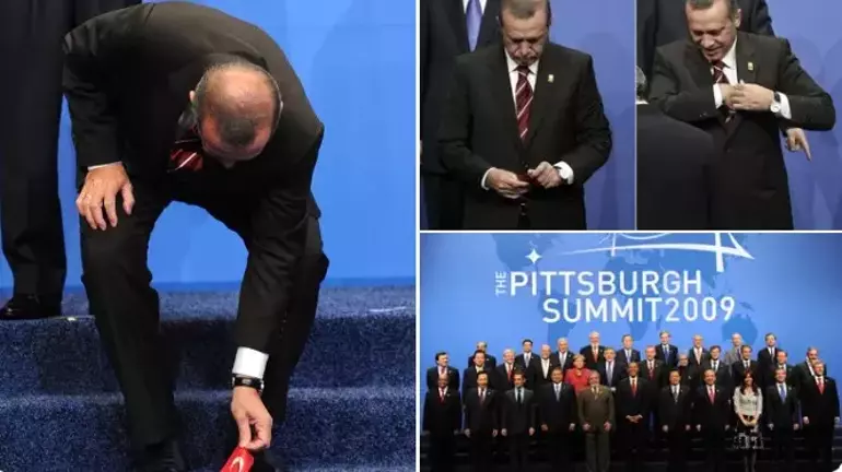Cumhurbaşkanı Recep Tayyip Erdoğan da2013 yılında Rusya'nın St Petersburg kentinde düzenlenen G20 Liderler Zirvesinde aile fotoğrafının çektirildiği platformda yerdeki Türk bayrağını alarak ceketinin cebine koymuştu.