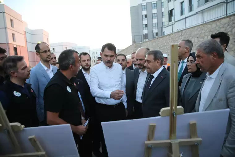 Bakan Kurum, Eyyübiye ilçesi Batıkent Mahallesi'nde yapımı devam eden TOKİ Deprem Konutları'nın bulunduğu alana geçti. Buradaki çalışmaları yerinde inceledi, yetkililerden bilgi aldı ve örnek daireyi ziyaret etti. Ayrıca inşaatta çalışan işçilerle de sohbet etti.