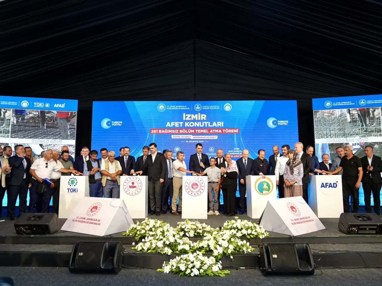 İzmir'in Ödemiş ilçesinde orman yangınları sonrası yeniden inşa edilecek konutların temel atma töreninde konuşan Çevre, Şehircilik ve İklim Değişikliği Bakanı Murat Kurum, "En geç 1 yıl içinde teslim edeceğimiz bu yeni yuvalarda aileler çocuklarıyla yeni hatıralar biriktirecek. İzmir'in bereketi yeniden canlanacak" dedi.