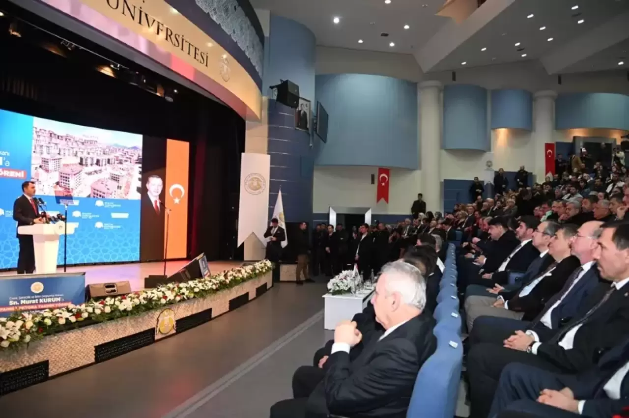 "İlim sahibi olmak da devlet adamı olmak da ayrıcalık değildir. Büyük bir sorumluluktur ve ancak memleket için üretmekle, millet için çalışmakla anlam kazanır. Ben de bu anlayışla, hep üreten, hep çalışan tarafta olmaya gayret gösterdim. Bildiğiniz gibi, 2023 yılında yaşadığımız depremlerden bu yana önceliğim, tüm gayretim, hedefim depremi yaşayan 11 ilimizi bir an evvel ayağa kaldırmak oldu. Hamdolsun artık, yaşadığımız asrın felaketinin tüm izlerini geride bırakıyoruz. Şu an halihazırda, 11 ilimizde, 174 ayrı alanda 3 bin 481 şantiyede, 200 bin mimar, mühendis ve işçi kardeşimizle birlikte 7 gün 24 saat arı gibi çalışıyoruz. Kısa bir süre önce 350 bininci yuvamızı tüm sosyal donatılarıyla, parkları, bahçeleriyle birlikte afetzede vatandaşlarımıza teslim ettik. Yani afetzede kardeşlerimizin yüzde 80'ini evlerine kavuşturduk. İnşallah yıl bitmeden 453 bin konutumuzun tamamını ve hatta daha da fazlasını teslim edeceğiz. Artık gönül rahatlığıyla söyleyebiliriz ki Cumhurbaşkanımız Recep Tayyip Erdoğan'ın liderliğindeki Türkiye, asrın felaketini, bir şehircilik destanına dönüştürmüş azimdir, kararlılıktır. Deprem bölgesinde saatte 23, günde 550 konut inşa eden adeta bir Avrupa ülkesi büyüklüğündeki alanı yeniden kuran ülkemizle gurur duyuyoruz, onur duyuyoruz, şeref duyuyoruz. Ve elbette milyonlarca afetzede kardeşimize yeni yuvalarını sunma yolunda, bu güzel millete hizmetkar olma yolunda bizleri yetiştiren hocalarıma çok teşekkür ediyorum" ifadelerini kullandı.