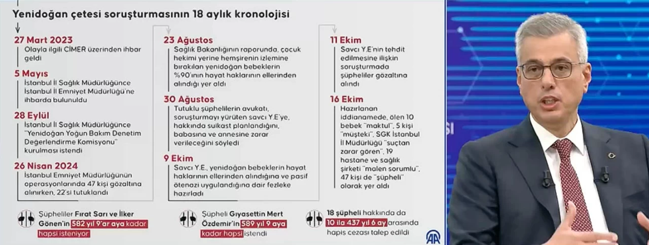 Sağlık Bakanı Memişoğlu, "Bebek ölümlerinden şüphelilerin sorumlu olduğu kanaatini içeren tıbbi mütalaa 16 Eylül 2024'te savcılığa gönderiliyor. Savcılık 16 Ekim 2024'te iddianamesini bitiriyor. Biz de 18 Ekim'de hastanelerin ruhsatlarını iptal ediyoruz ve kapatıyoruz." dedi.