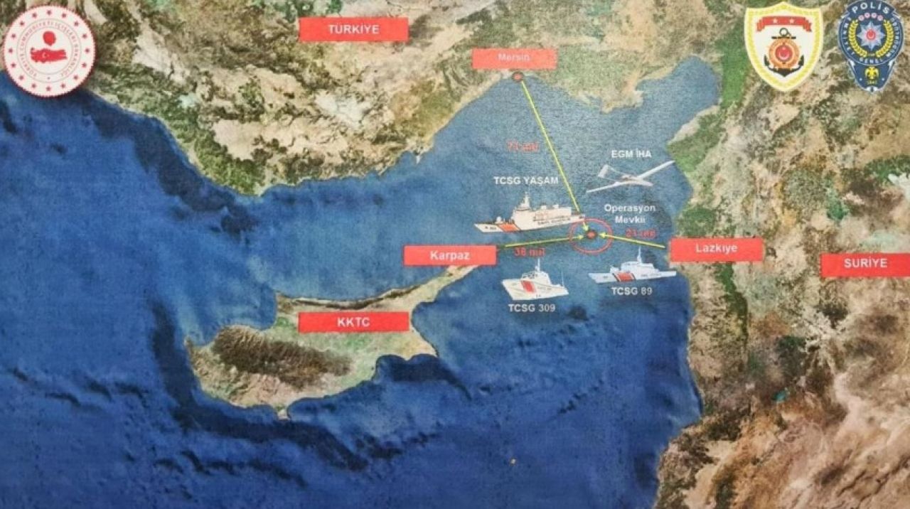 Suriye açıklarında müdahale edilen gemide 1,5 tonun üzerinde uyuşturucu madde ele geçirildi.