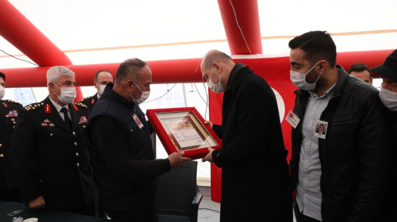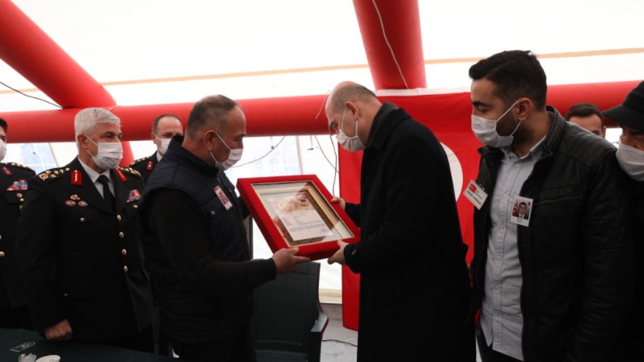 Şehidin Etimesgut Elvan Mahallesi'ndeki baba ocağına gelen Bakan Soylu'yu Jandarma Genel Komutanı Orgeneral Arif Çetin, Ankara Emniyet Müdürü Servet Yılmaz, Etimesgut Kaymakamı İzzettin Sevgili, Etimesgut Belediye Başkanı Enver Demirel karşıladı.