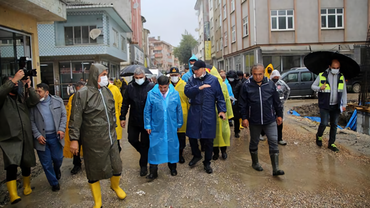 İçişleri Bakanı Süleyman Soylu, şiddetli yağışın ardından 11 Ağustos'ta selin yaşandığı Bozkurt'ta kullanılamaz hale gelen dükkanlarda sürdürülen çalışmaları inceledi. Çalışmalarla ilgili bilgi alan Soylu, esnafın taleplerini dinledi.