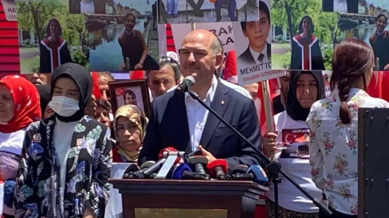 Soylu, bugün buraya ülkenin her noktasından sivil toplum örgütlerinin de geldiğini belirterek, "Burada muharip gazilerimiz, sendikalarımız, HAK-İŞ Genel Başkanımız, milletvekillerimiz, siyasi partilerimiz, AK Parti il başkanları, yöneticileri, MHP il başkanları var. Burada annelere, annelerin bu büyük mücadelesine, bu büyük başkaldırısına, bu büyük itirazına, evladına kavuşma isteğine ama en önemlisi bu anlayışı göstererek, başka evlatların bu tuzağa, HDP ve PKK'nın tuzağına düşmemesine yönelik bir çağrı var." diye konuştu.