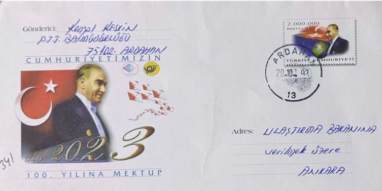 İki çocuk babası olan PTT çalışanı Kemal Keskin, 21 yıl önce geleceğe bir anı bırakmak ve mektup kavramını toplumda canlı tutmak amacıyla PTT tarafından hayata geçirilen, "2023'e Cumhuriyetimizin 100’üncü Yılına Mektup Kampanyası’ kapsamında Ulaştırma ve Altyapı Bakanlığı makamına mektup yazdı.