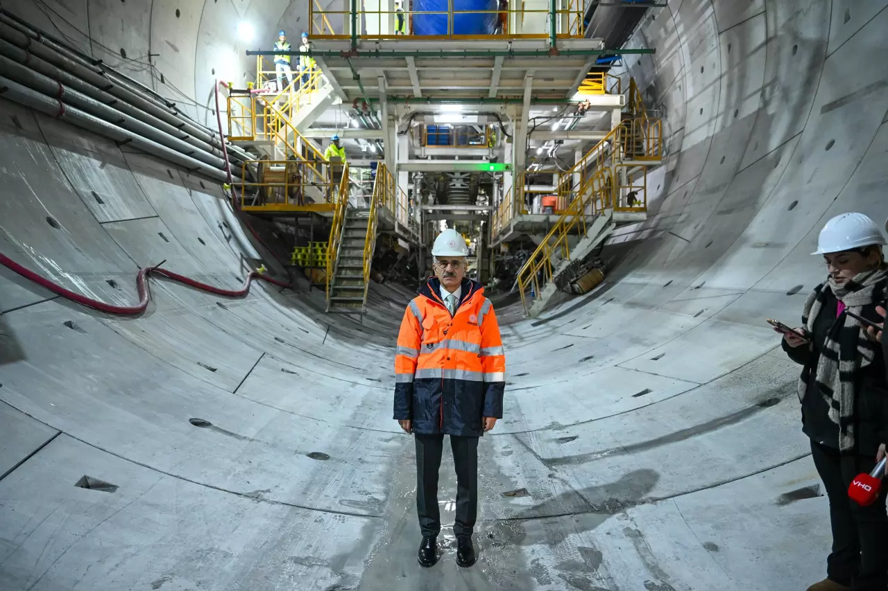 Tünelde gazetecilerin sorularını yanıtlayan Bakan Uraloğlu, "Arkamda gördüğünüz yapı yaklaşık 100-110 metre civarında bir yapıdan bahsediyoruz. 12-12,5 ayda 13 ayda bir makine 5 kilometre tünel kazmış olacak. Gerçekten kıymetli. Ve bir günde de ortalama 15-17 metre kazarken bir günde 34 metrelik bir rekor yakaladık. Dünyada bildiğimiz daha bunun yükseği yok. 34 metre bakın bir makine 34 metre kazdı, segmentlerle zemini destekledi ve yolumuza devam ediyoruz. Peki diğer tarafta da diğer tüpte de NAT'ım dediğimiz makinelerle kazı yöntemiyle devam ediyoruz. İnşallah önümüzdeki yıl bitmeden tünelimiz bitirerek Kilyos'tan Sarıyer'e 35 dakika süren seyahati sadece 5 dakika indirmiş olacağız" diye konuştu.