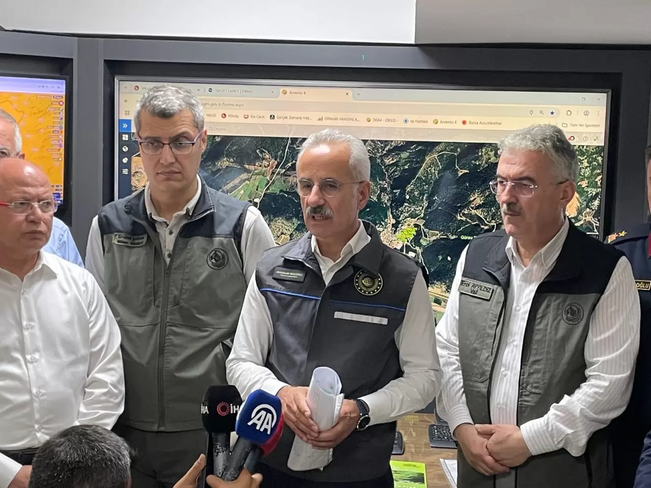 Bursa Orman Bölge Müdürlüğü'ndeki koordinasyon merkezinden Bursa'daki yangınları takip eden Ulaştırma ve Altyapı Bakanı Abdulkadir Uraloğlu, "Bütün kamu ve kuruluşları sahaya gerekli müdahaleleri yapıyor. Havanın çok sıcak olması ve bazı bölgelerde rüzgarın etkisiyle de yangın yayıldı. Ancak, Orhaneli tarafındaki yangın ciddi şekilde daraltıldığı konusunda mesafe kat edildiğini söyleyebilirim. İnşallah kısa sürede arkadaşlarımızla beraber sonuç alma gayreti içerisindeyiz. Kestel ve Gürsu tarafındaki yangının 110 hektar civarında bir alanda etkili olduğunu kabaca tespit ettik. Elbette net rakamlar yangından sonra açıklanacaktır. Hava kararana kadar 13 tane hava aracımızın etkin bir şekilde müdahale etti. Ancak hava karardıktan sonra hava araçlarıyla bir müdahale söz konusu olmuyor" dedi.