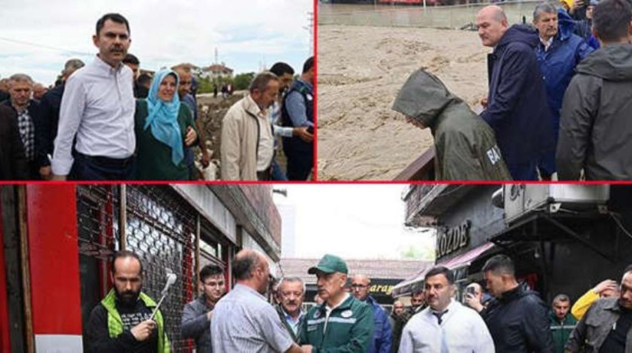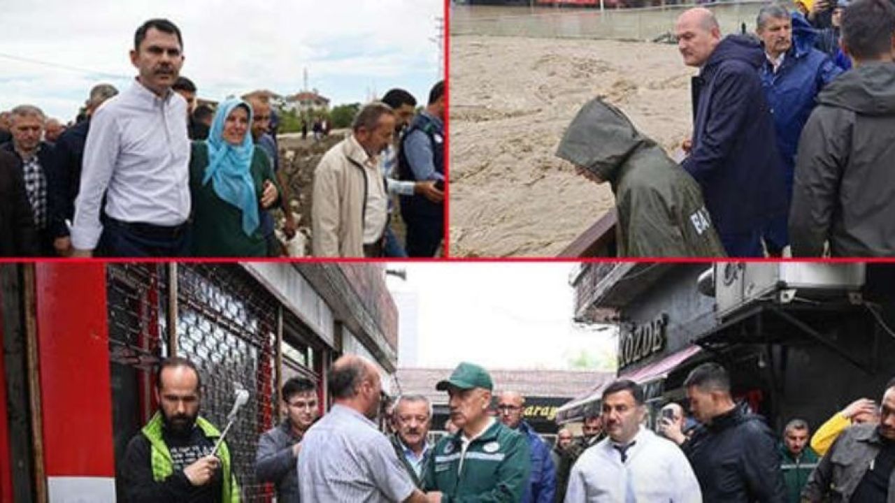 Cumhurbaşkanı Erdoğan'ın talimatıyla Sel bölgesine giden, Çevre, Şehircilik ve İklim Değişikliği Bakanı Murat Kurum, İçişleri Bakanı Süleyman Soylu, Tarım ve Orman Bakanı Vahit Kirişci, Aile ve Sosyal Politikalar Bakanı Derya Yanık ve Ulaştırma ve Altyapı Bakanı Adil Karaismailoğlu son durumu aktardı.
