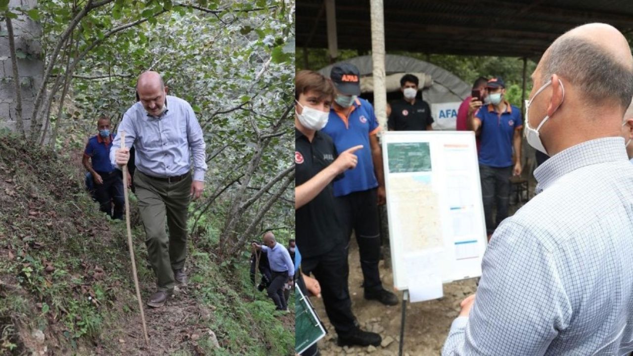 Giresun'da meydana gelen selin ardından bölgede incelemelerine devam eden Bakanlar Soylu ve Karaismailoğlu, Çaldağ köyünde sel sularına kapılarak kaybolan Emine ve Davut Akgün'ün yakınlarıyla görüştü, arama kurtarma çalışmalarına ilişkin AFAD yetkililerinden bilgi aldı.