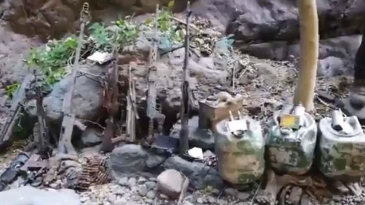 "Başarıyla devam eden Pençe Harekâtı’nda teröristler tarafından kullanıldığı tespit edilen mağarada 1 Adet AT4 tanksavar silahı, bir Zagros keskin nişancı silahı, bir Dragunov keskin nişancı silahı, bir HK-33 piyade tüfeği, üç AK-47 piyade tüfeği, iki BKC makineli tüfek, bir termal dürbün, bir Dragunov keskin nişancı silahı dürbünü, bir Yaesu büyük telsiz (sözde liderler tarafından kullanılan), piyade tüfeği mühimmatı, EYP yapımında kullanılan çeşitli malzemeler ve örgütsel döküman ele geçirilmiştir. Mağaraya yakın gömülü depoda ise 100 litrelik bidonlar içerisinde olmak üzere; bir bidon sıhhi malzeme, bir bidon hazır gıda bulunmuştur. Ele geçirilen malzemeler komandolarımız tarafından yerinde imha edilmiştir."