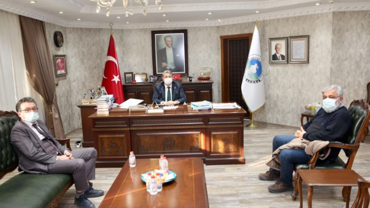 Sohbet havasında geçen ziyarette çeşitli konularda istişarelerde bulunuldu. Ziyaret sonrası değerlendirmelerde bulunan Başkan Akın; “Prof. Dr. Sayın Erdoğan Atmış ve Av. Sayın Engin Uzun belediyemizi ziyaret ettiler. Kendileriyle belediye çalışmalarımız başta olmak üzere çeşitli konularda fikir alışverişinde bulunduk. Nazik ziyaretleri için teşekkür ediyorum” dedi.