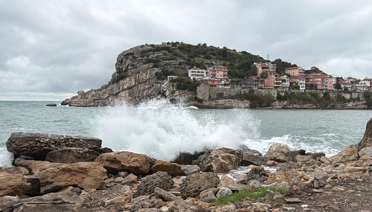 Meteoroloji Genel Müdürlüğü'nün uyarısı sonrası Amasra'da fırtına etkili oldu, denizde dalga oluştu.