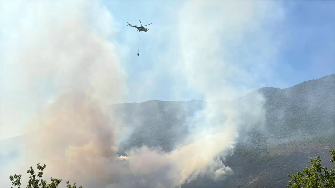 Geniş alana yayılan duman ve alevler nedeniyle yangına havadan ve karadan müdahale ediliyor. Rüzgar ve engebeli arazi, ekiplerin çalışmalarını zorlaştırıyor. Yangının ilerlemesini önlemek amacıyla iş makineleriyle ormanlık alanda yol açma çalışmaları başlatıldı.