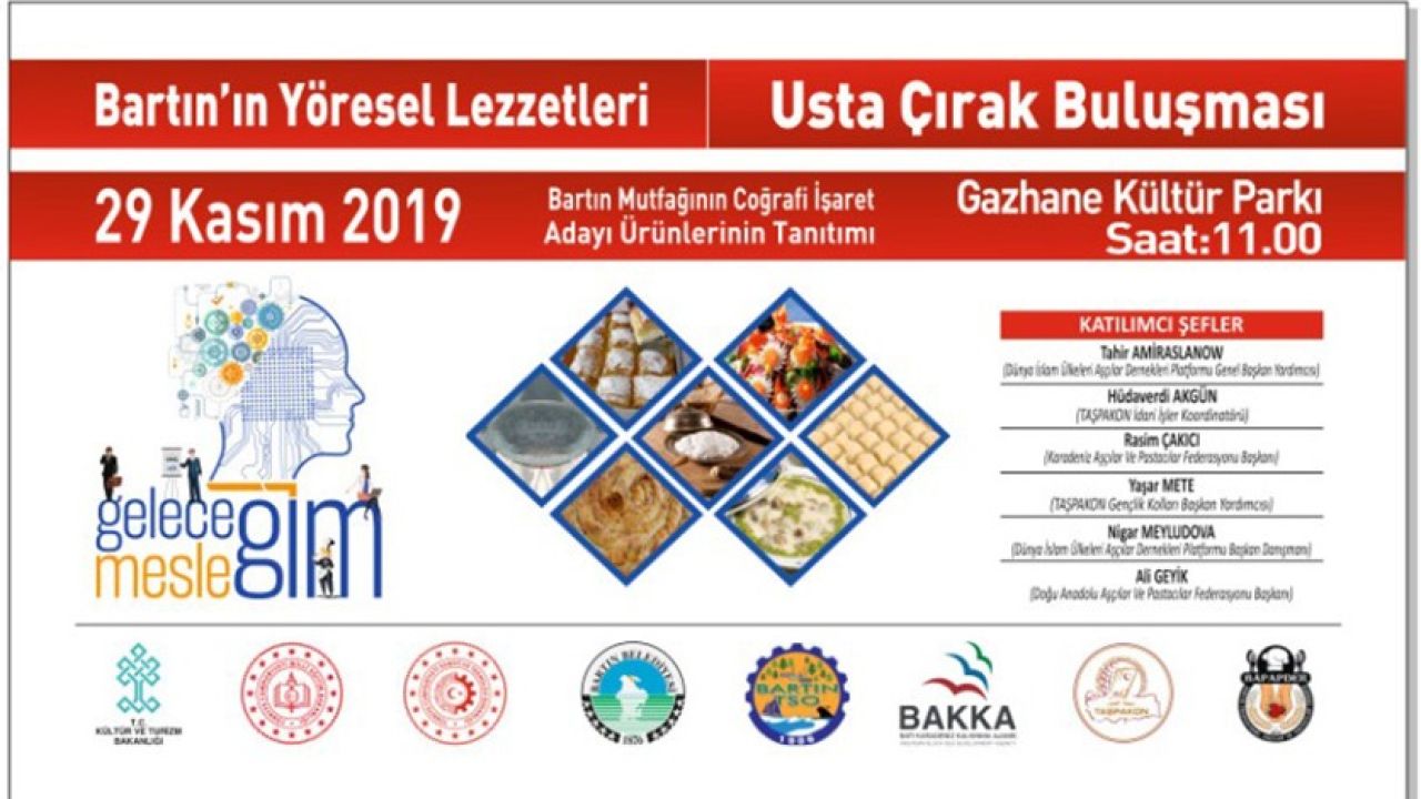 2019 yılında çalışma hedefi olarak “Mesleki Eğitim Teması” belirleyen Sanayi ve Teknoloji Bakanlığı tarafından verilen talimat doğrultusunda çalışmalarını sürdüren Batı Karadeniz Kalkınma Ajansı, Bartın Belediyesi, Ticaret ve Sanayi Odası, İl Milli Eğitim Müdürlüğü, İl Kültür ve Turizm Müdürlüğü, BAPAPDER ve TAŞPAKON işbirliği ile 28 – 29 Kasım 2019 tarihleri arasında Bartın’da “Bartın’ın Yöresel Lezzetleri – Usta Çırak Buluşması” organizasyonunu düzenliyor.