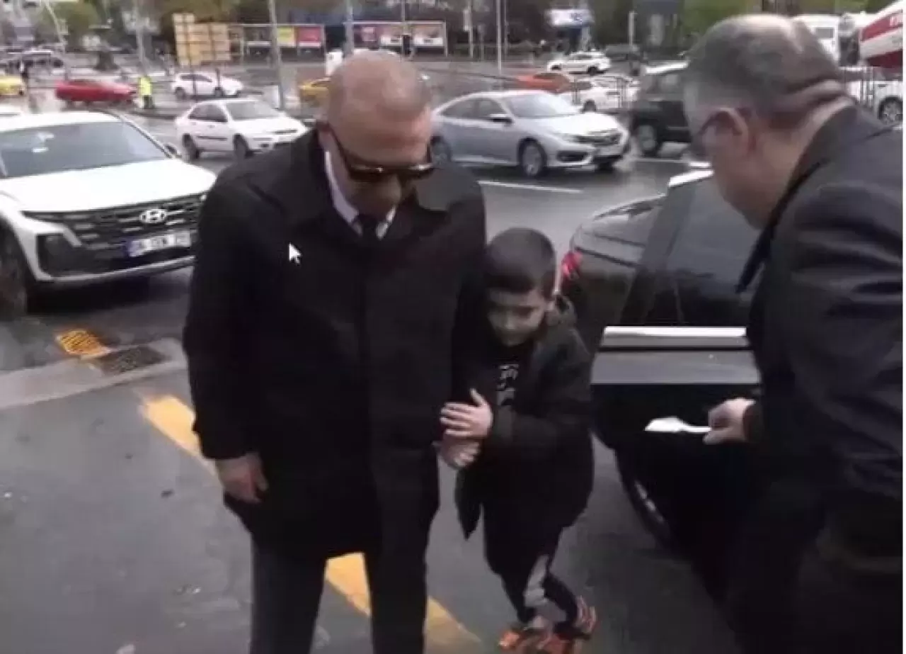 Kaan Fahri, MHP Lideri Bahçeli'yi karşılamaya babasıyla birlikte geldi.