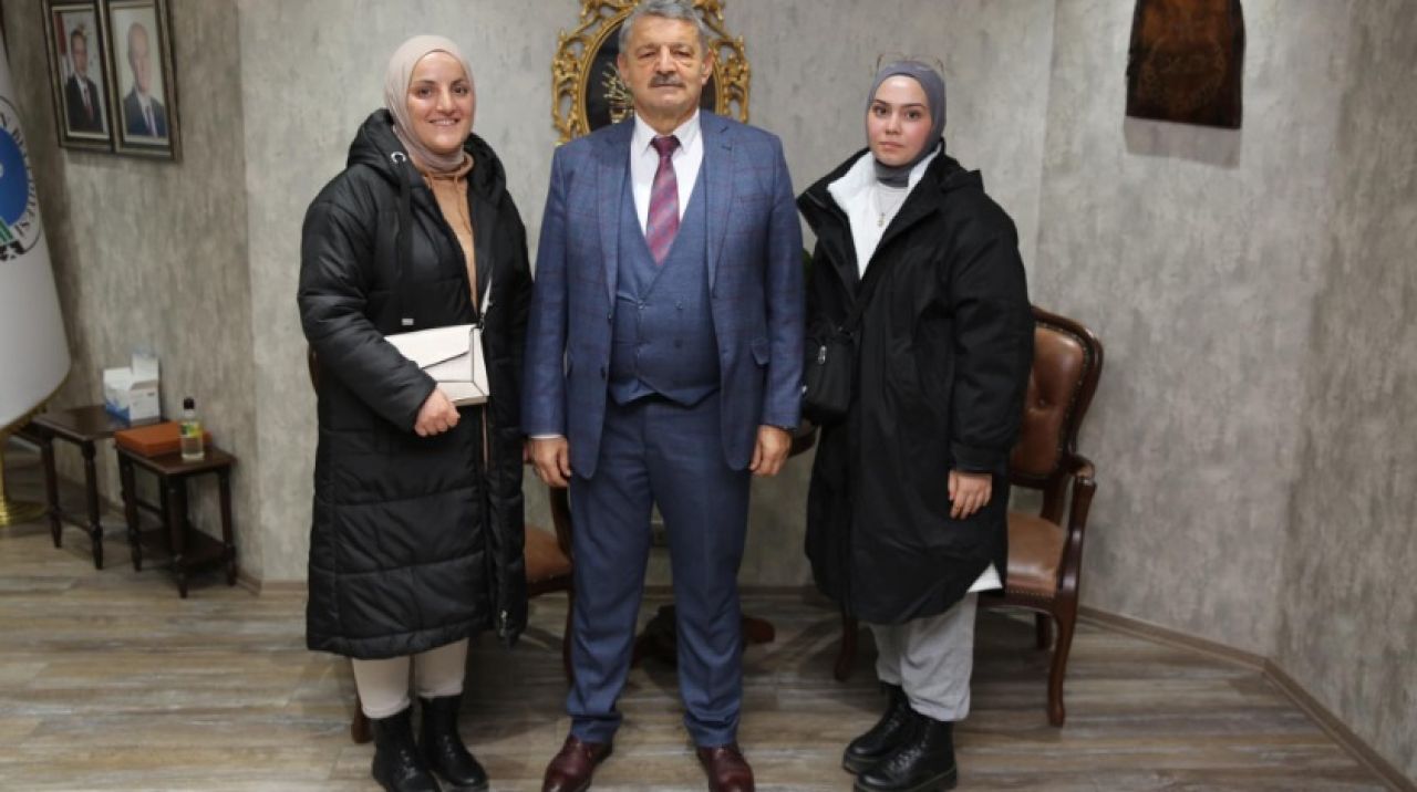 Makam odasında gerçekleşen ziyarette Bartın Üniversitesi Tarih Bölümü 3. Sınıf Öğrencileri Şeyma Yaprak ve Nurgül Erkuş “Bartın Şehir Tarihi” konulu ödevleri için Başkan Cemal Akın ile röportaj gerçekleştirdiler. Öğrencilerin sorularını içtenlikle yanıtlayan Başkan Cemal Akın şehrimizin tarihi hakkında da detaylı bilgiler verdi. Gerçekleşen ziyaret ve röportajdan ötürü büyük mutluluk duyduğunu ifade eden Akın, öğrencilere eğitim öğretim hayatlarında başarılar diledi.