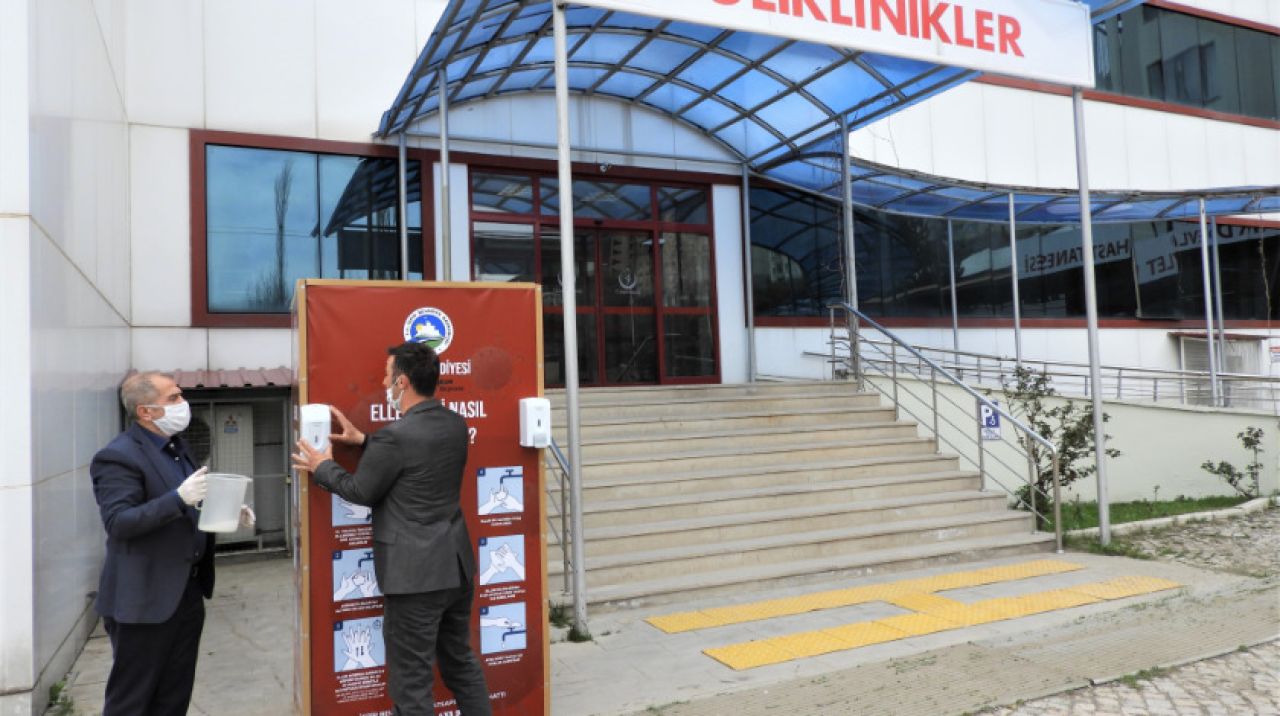 Erzurum / İspir Belediyesi yeni tip koronavirüs Covid 19 ile mücadele kapsamında ilçede vatandaşların yoğunlukta olduğu on noktaya el dezenfektan üniteleri yerleştirdi.