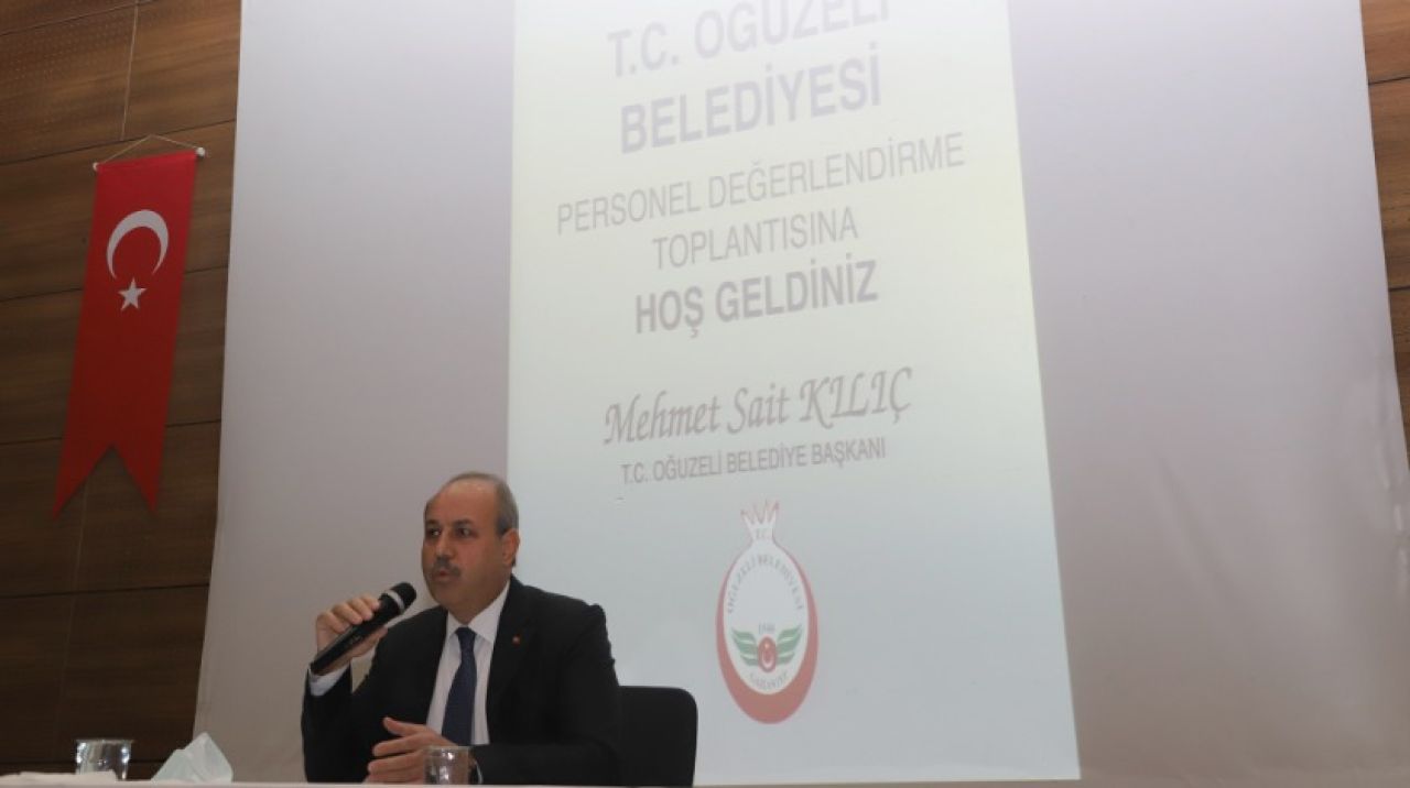 Oğuzeli Belediye Başkanı Mehmet Sait Kılıç, belediye personeli ile değerlendirme ve istişare toplantısı düzenledi. Oğuzeli Belediyesi Tiyatro Salonunda düzenlenen toplantıya Başkan Mehmet Sait Kılıç, başkan yardımcıları, birim müdürleri ve belediye çalışanları katıldı.