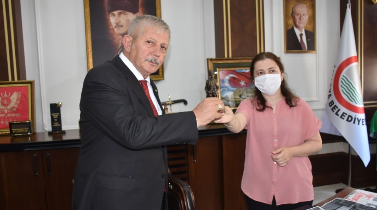Şehit Aileleri ve Malul Gazilerin ailelerinin faydalanabilmesi için ücretsiz olarak tahsis edilen belediyeye ait işyerinin anahtarı Belediye Başkanı Mehmet Sarı tarafından Şehit Aileleri ve Malul Gaziler Derneği Başkanı Neslihan Ay’a teslim edildi.